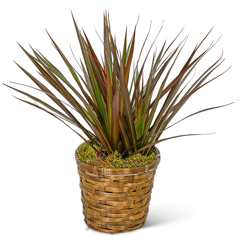 Our Dracaena Marginata Plant in a Basket is a gorgeous plant that features long, slender leaves with a striking red edge, all arranged in a stylish woven basket. The Dracaena Marginata plant is known for its striking appearance and easy care. This plant thrives in bright, indirect light and can tolerate lower light levels as well. It also requires minimal watering, allowing you to enjoy its beauty without the hassle of constant care.