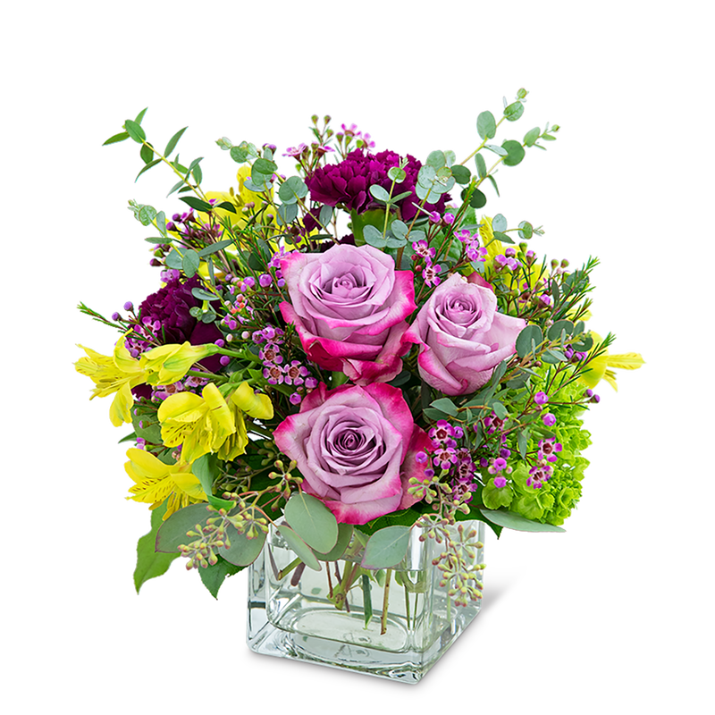 Are you wanting to send a sweet sentiment or gift? Our Perfect Plum design features long-lasting Alstroemeria, purple carnations and roses, hydrangea, premium foliage, and wax flower accents. Perfect Plum is a lovely way to send your love and appreciation! It will be the perfect complement to a home or office and will look stunning on a side table or desk.