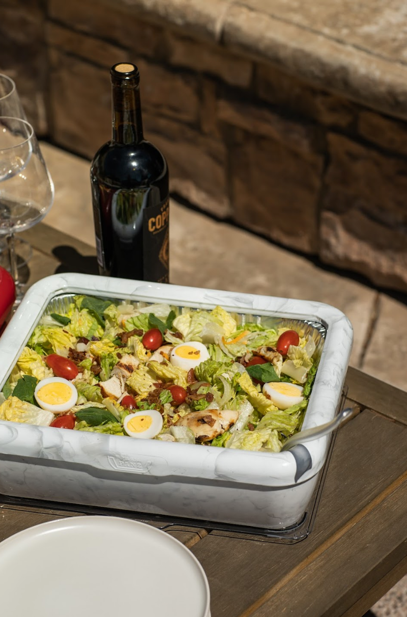 Fancy Panz are used to dress up, protect and serve from a foil pan. Perfect for tailgating, potlucks, picnics, holidays and more! Our premium pans are sized to accommodate the included hot/cold gel pack so food can be kept at the desired temperature without the use of bulky chaffing dishes.