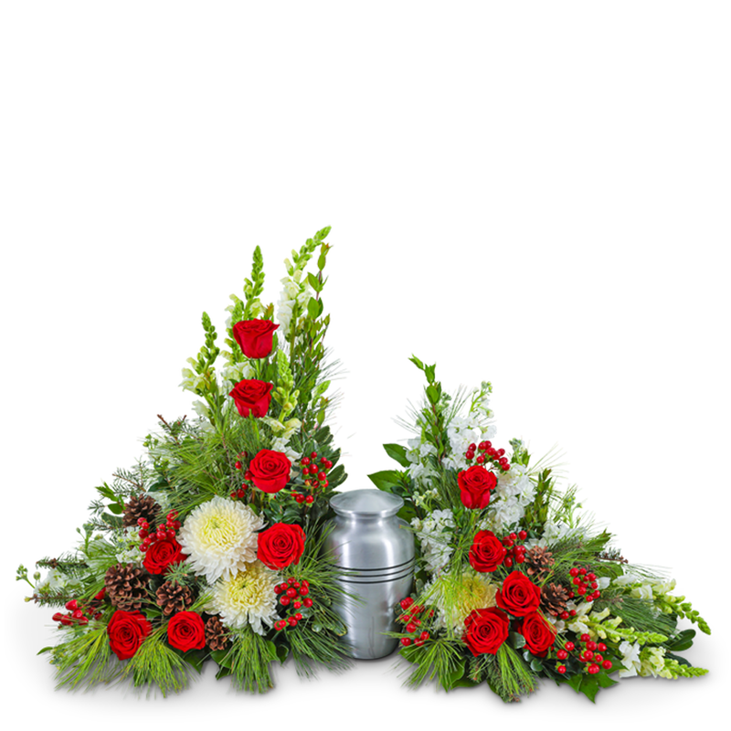 Our Whispering Winter Sanctuary is simply stunning and is a meaningful final tribute for a loved one. It features Roses, Stock, Snapdragons, Mums, and other premium foliage to surround an urn during a funeral or celebration of life ceremony. Funeral flowers are a meaningful way to celebrate the life of the deceased while providing comfort to the friends and family left behind. This tribute is perfect for cremation services or a Celebration of Life Service to honor your loved one.